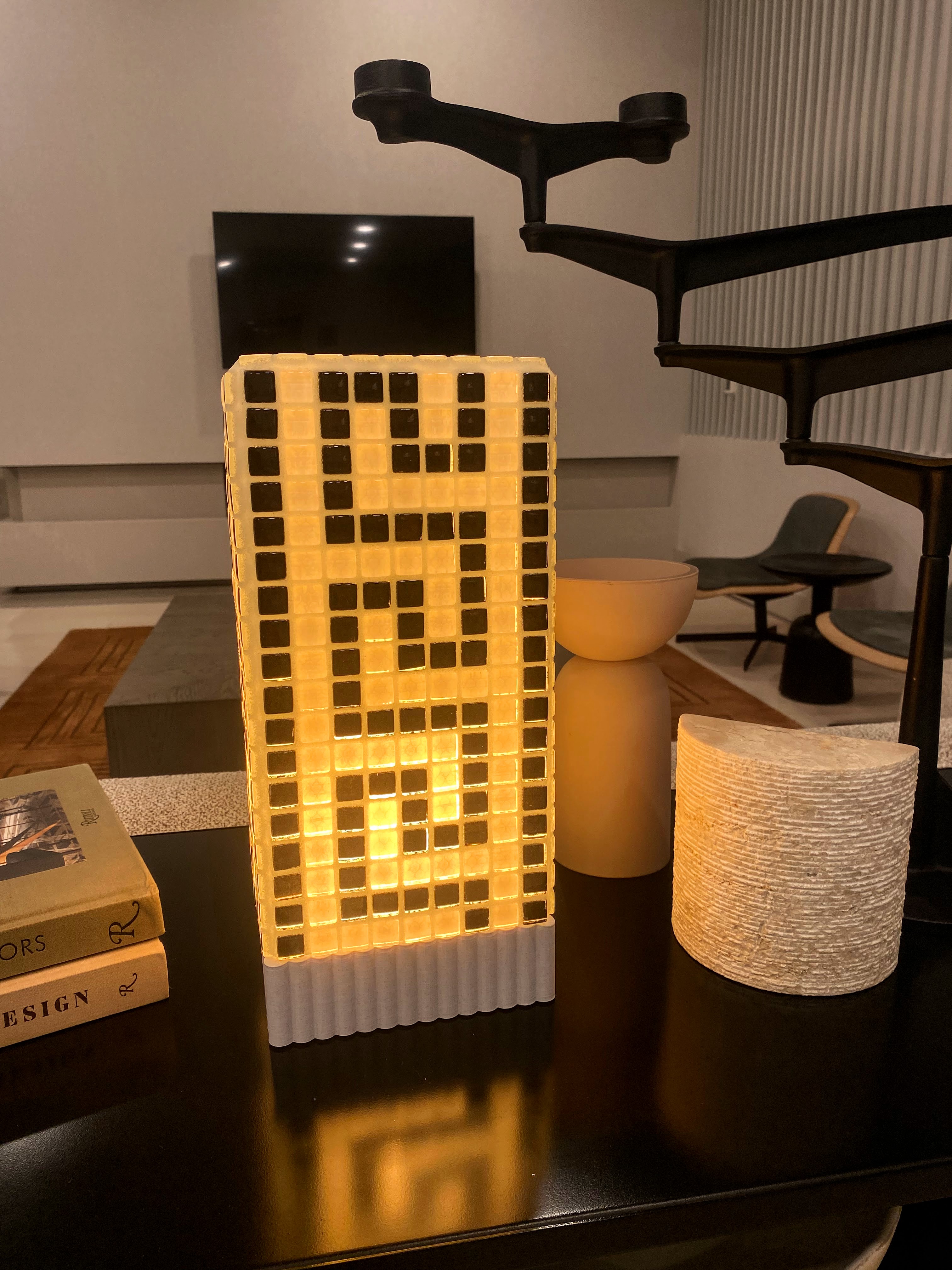 Sculpting light with innovative contours and recycled glass tile. Designed to catch light, shadow, and attention from every angle.